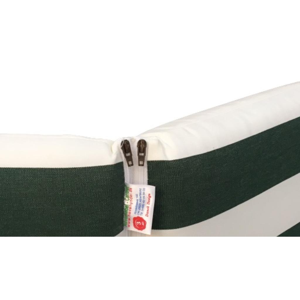 Gl. Jagt-Grøn og Hvid 5,8 cm blok striber (Dess. 576) DRALON Stof 8 cm. tyk vendbar lux hynde 65 m/m tyk, 25 kg. skumkerne Svøbt i 2x200 g. fiber. |