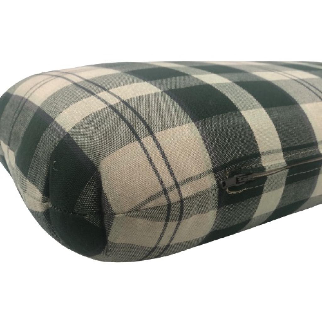 Grøn og Beige Ternet (Dess. 746) DRALON Stof. 6 cm. tyk vendbar lux hynde 45 m/m tyk, 25 kg. skumkerne, Svøbt i 2x200 g. fiber. |