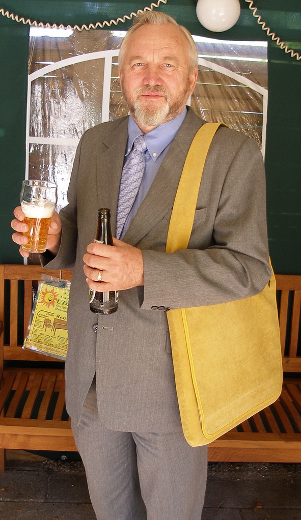 Med stor lomme til programmer, pung, slik, cigaretter og læbestift, m.m.