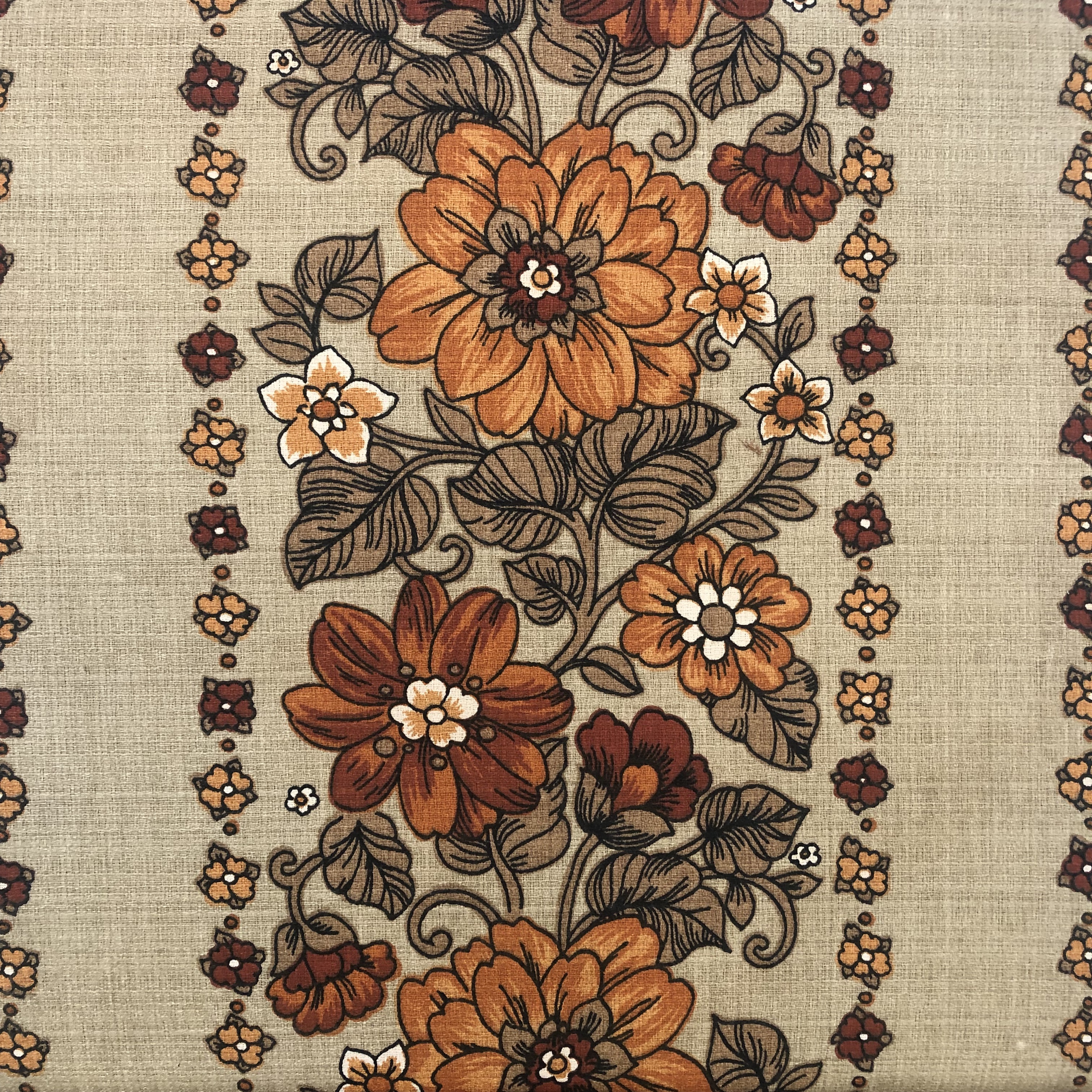 Blomster på brun bag grund, BOMULD Dess. 5001)